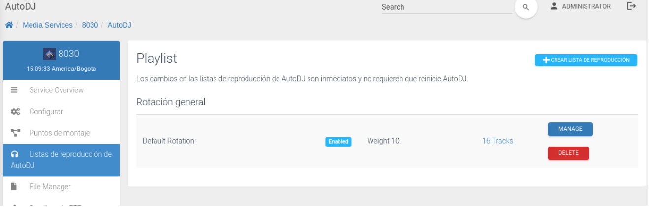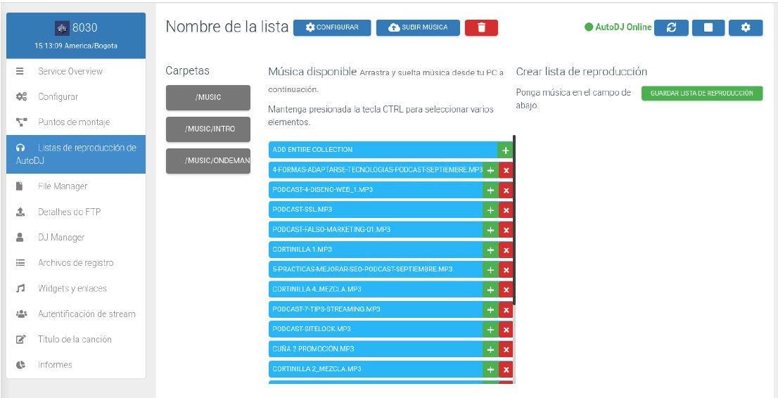 3.2 Una vez guardada la lista se vera en el panel de lista de reproducción de AutoDJ y comenzara a